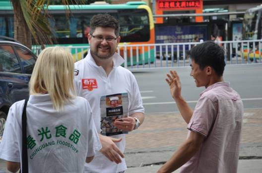 春光食品國際貿(mào)易部的小譚全程參與了本次活動,作為翻譯談起這次活動,小譚說:“很多市民說的最多的就是‘謝謝’,春光食品對于海南人來說非常熟悉,他們雖然不知道學(xué)員們在講什么,但是第一反應(yīng)都會說‘春光?吃過了!很棒!’。”