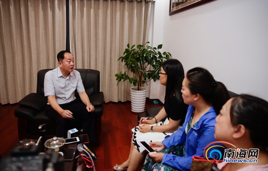 海南春光食品有限公司董事長兼總經(jīng)理黃春光接受記者采訪。南海網(wǎng)記者劉洋攝